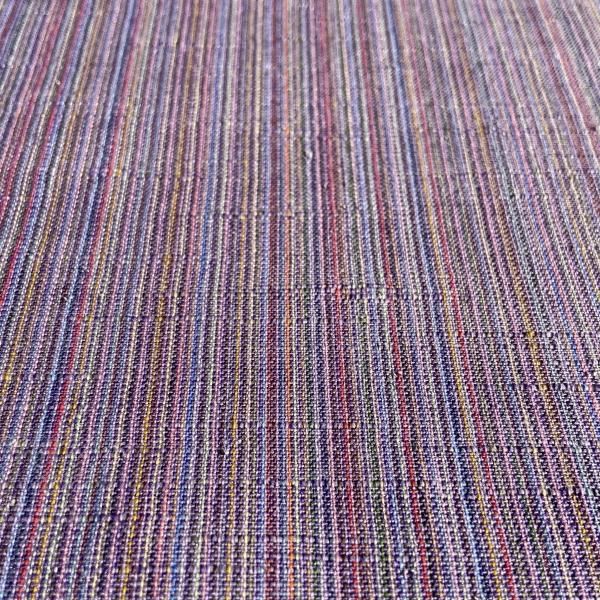 くすみのある薄い紫。様々な色の線の縞。遠目で見ると無地のようにも見え、使いやすい柄です。
